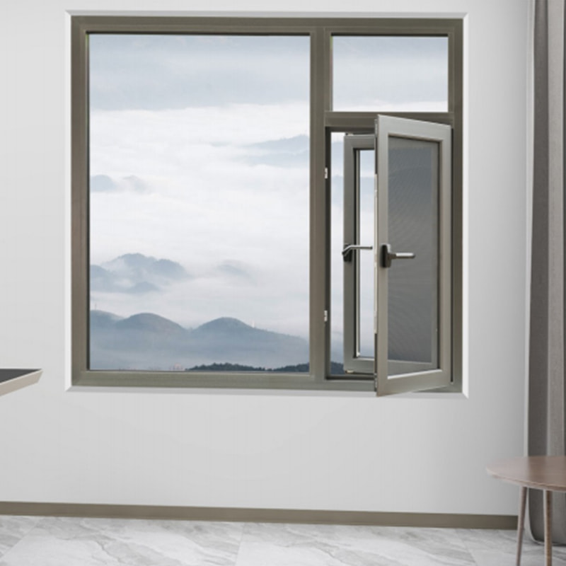 Design integrado de janela e tela. Excelente isolamento térmico, estanqueidade, isolamento acústico e desempenho de resistência ao vento. Evite que as crianças subam em acidentes. O canto arredondado de proteção em liga da ventoinha de abertura é anticolisão e mais seguro, e a moldura fica nivelada com a ventoinha, o que torna o todo mais forte e bonito. A janela de batente integrada em aço dourado com sistema de ruptura térmica 110 oferece algumas opções, incluindo espessura da parede do material principal, diferentes sistemas e opções de vidro de 5 20A 5 (vidro temperado de camada dupla), e também é combinada com perfis de alumínio com isolamento térmico. Perfis de alumínio isolados geralmente possuem resistência estrutural suficiente para garantir a estabilidade e durabilidade da janela.